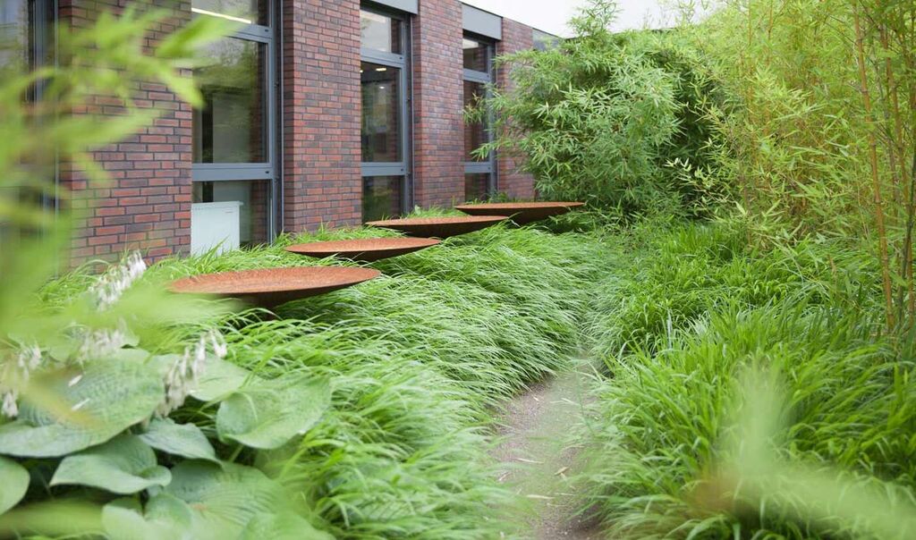 So neuartig das Konzept so innovativ auch seine Architektur entworfen durch das Architekturbüro Esser Coenen Forsch & Partner. Der Bau erstreckt sich über zwei Geschosse und gliedert sich in drei Bereiche mit zwei Innenhöfen, dem „Wassergarten“ und dem „Marktplatz“.